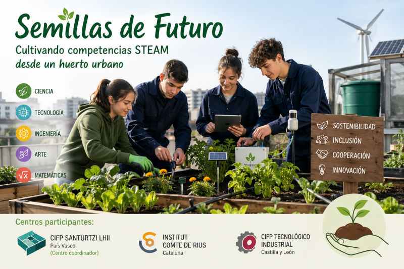 A lo largo de dos cursos escolares, alumnado y profesorado colaborarán en el diseño, desarrollo y mejora de huertos educativos sostenibles, participando también en movilidades, talleres técnicos y actividades STEAM compartidas, con el objetivo de mejorar la motivación, la inclusión educativa y la calidad de la formación profesional básica.